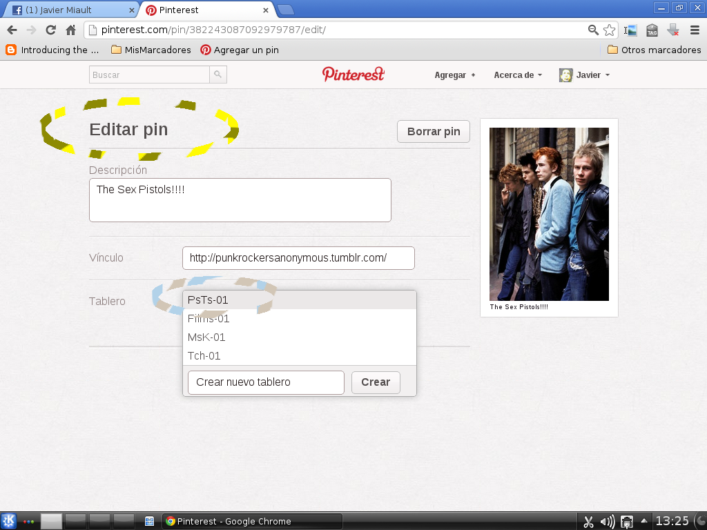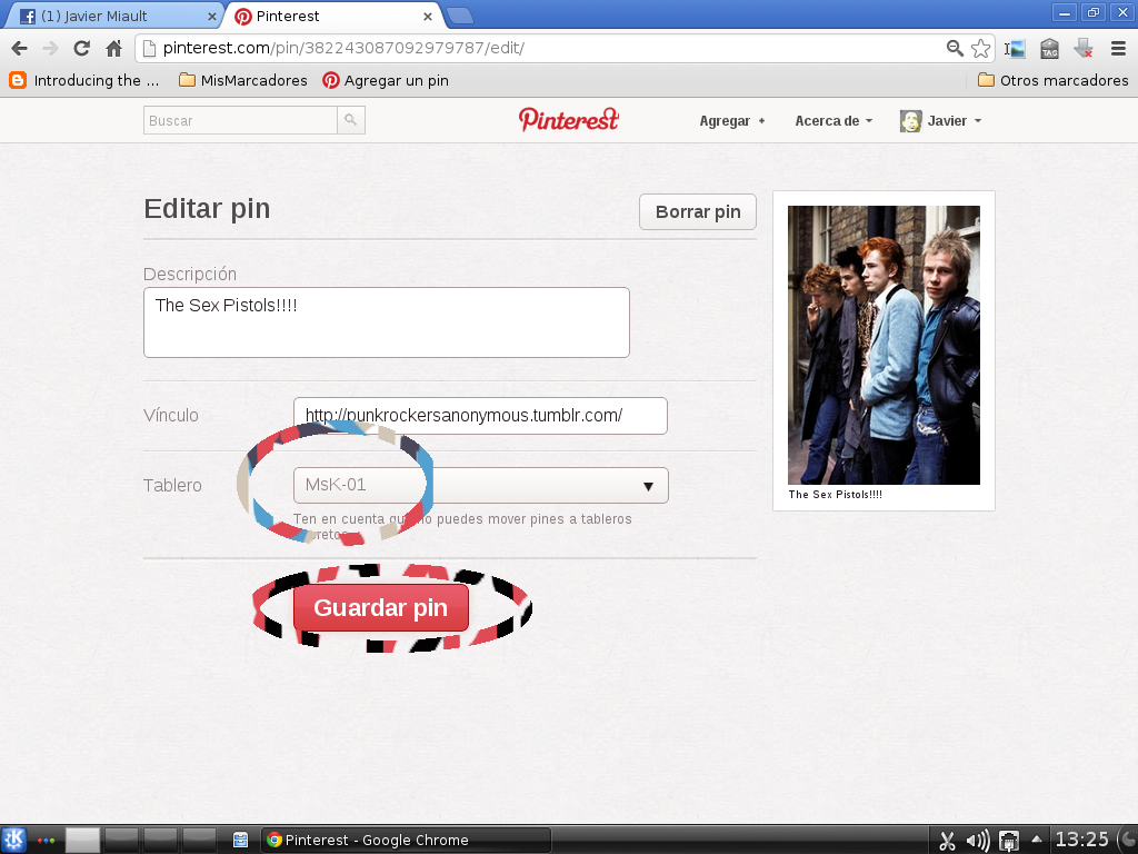 Imagen 3 = Epa! los Sex Pistols. al pasar el puntero del mouse por la imagen que nos gusta aparecerán varias opciones, por el momento la que nos interesa son los tres botones que aparecen arriba y a la izquierda de la imagen con el siguinte texto: